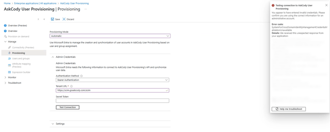 After having done the initial set up for the Enterprise Application, it is necessary to log into your AskCody account, and enable provisioning from there. Please follow these steps to do so: